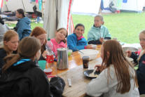 Beim Mittagessen – Tortellini mit Schinken-Sahne-Soße – schlugen alle Zelte besonders zu.