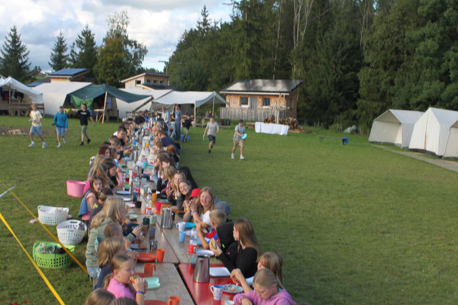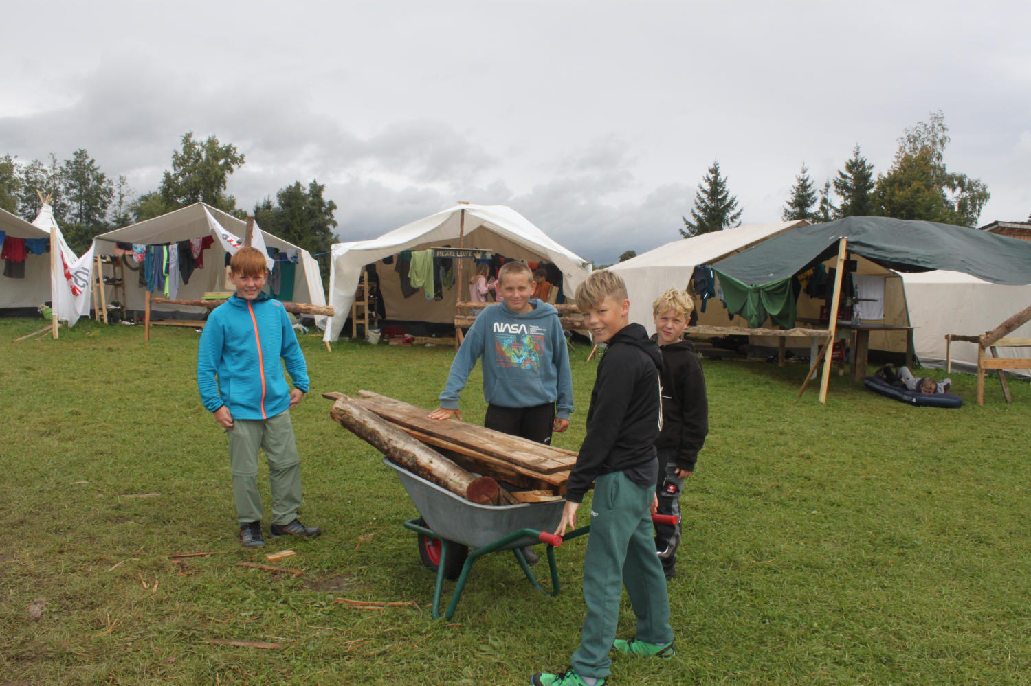 Die Küche kochte schon fleißig und die Kinder räumten ihr Zelt „ganz sauber“ auf.