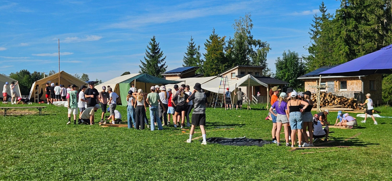Es ist so weit, das Lager ist voll! Heute sind endlich die lang ersehnten Kinder bei uns angekommen. Nachdem die ganzen Lagerregeln erklärt wurden und die Kinder ihre Betreuerinnen und Betreuer kennenlernen durften, wurde sofort gebastelt und gebaut. Bei bestem Wetter durfte auch eine Badezeit nicht fehlen, damit sich alle noch ein bisschen abkühlen konnten. Zum Abschluss gab es am Abend noch ein Abendprogramm ganz im Rahmen des diesjährigen Mottos Planeten. Tag 1 ist geschafft, die Kinder sind im Bett, wir sind müde und freuen uns auf morgen. Bis morgen!