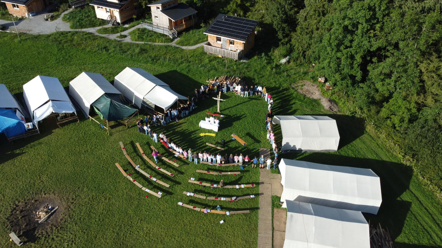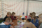 Die Küche kochte schon fleißig und die Kinder räumten ihr Zelt „ganz sauber“ auf.