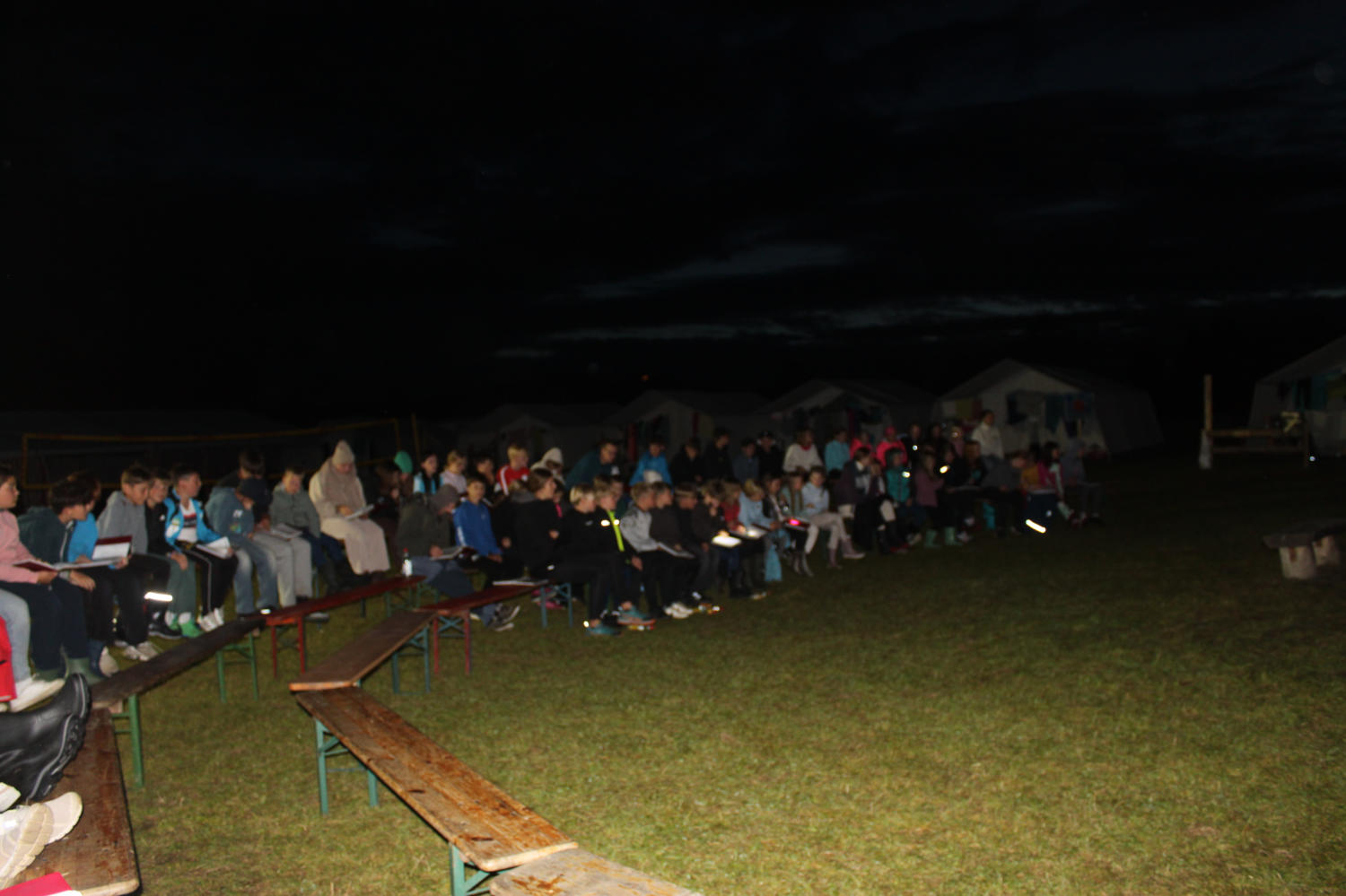 von Zelt 7 und 10. Mit verschiedenen Spielen, Liedern und Sketchen ließen wir den Tag gemeinsam am